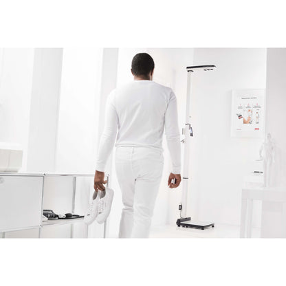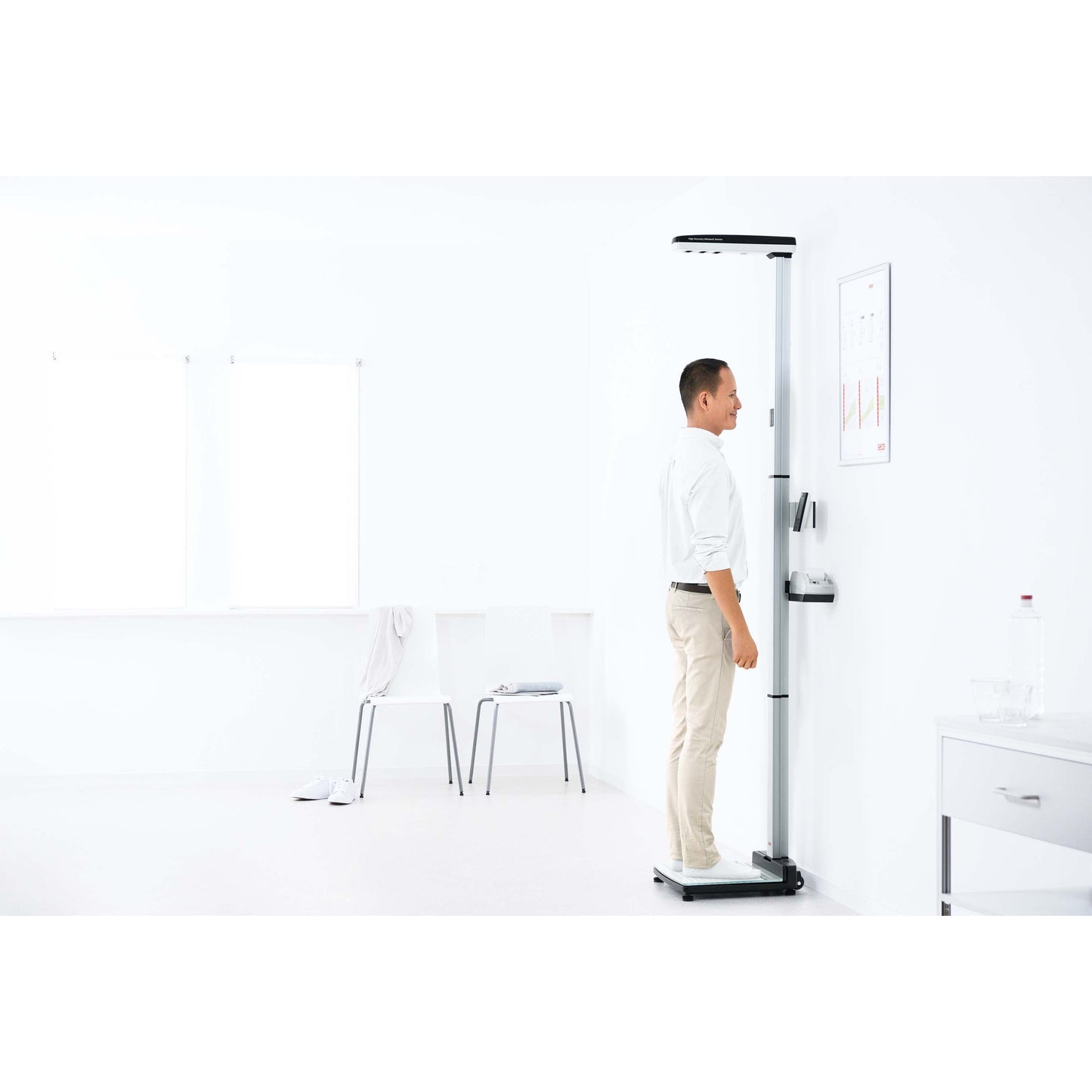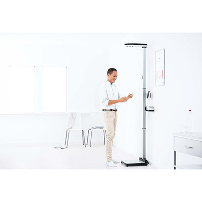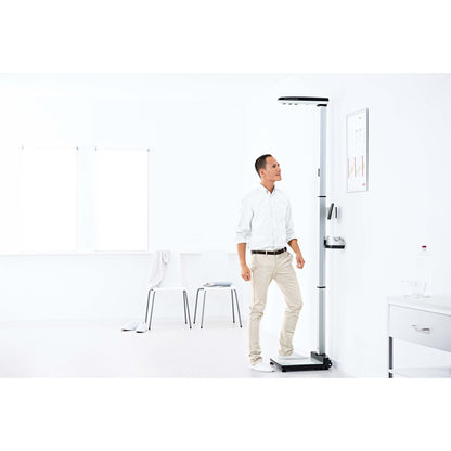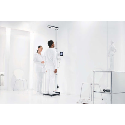 The seca 287 determines the height in just a few seconds with state-of-the-art ultrasound technology. The staff do not need to handle it, because the measuring station has voice guidance that facilitates precise and reliable self-measurement of the patient. This saves time and takes the pressure off staff, especially when taking series measurements. Thanks to its integration capacity, height and weight can be stored directly in the digital medical record (EMR) or on a PC.