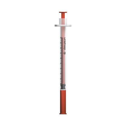 High quality, 1mL fixed needle low dead space syringe with volume markings in mL rather than insulin units.