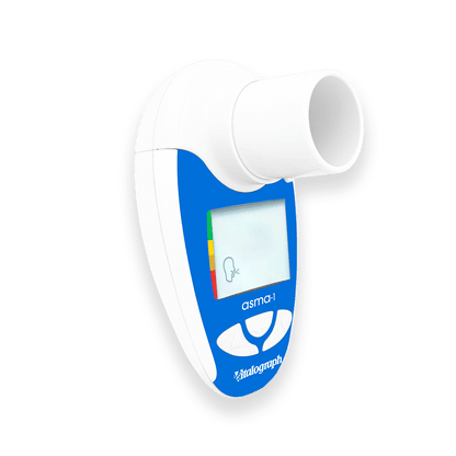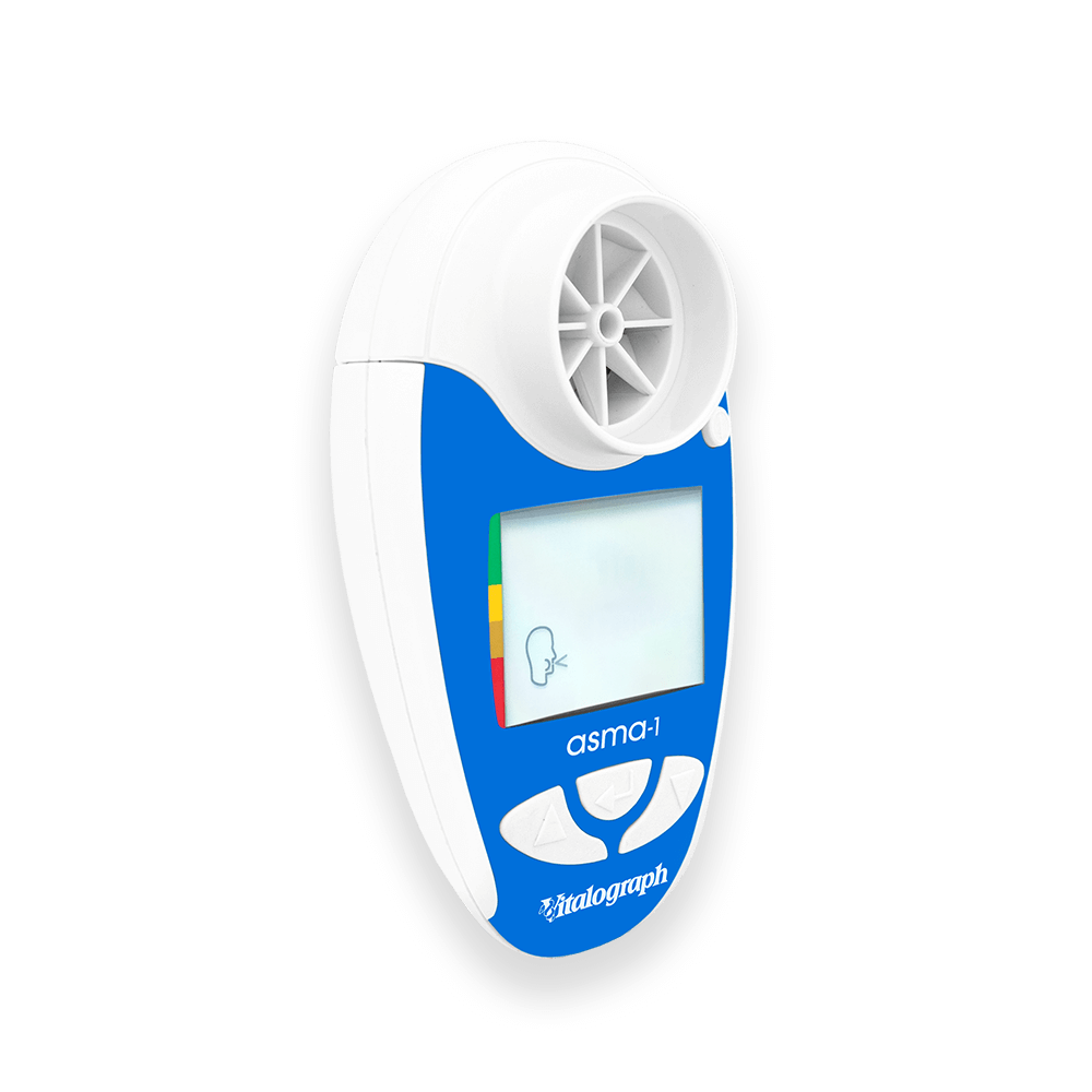 The Vitalograph asma-1™ is a lightweight home use electronic respiratory monitor that measures PEF and FEV1. It offers greater accuracy than mechanical peak flow meters and eliminates the need for paper record cards.